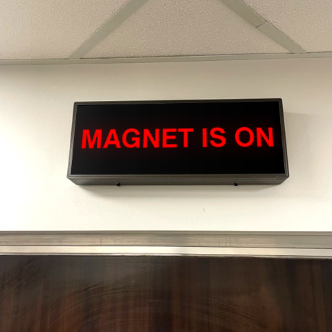 MAGNET IS ON sign used at a medical facility