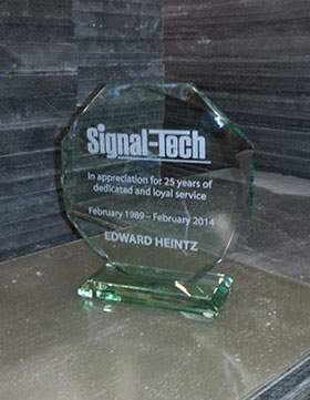 To celebrate his wonderful achievement, Tim and Larry presented him with a beautifully engraved plaque. Ed says he's looking forward to 25 more!!