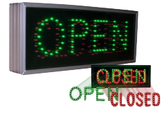 Signal-Tech’s #5887 OPEN|CLOSED sign outperformed equivalently sized neon and incandescent models. Only $4.20 annually to operate one sign, annual savings of $140 per sign.