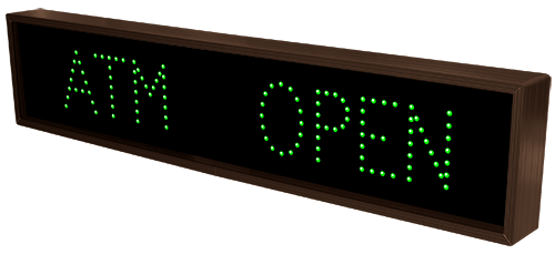 This TCL Series ATM | OPEN outdoor, blank-out sign is designed with super bright LEDs and a contrasting face; we guarantee it's readable in direct sunlight. The sign message is formed by visible LEDs on a black sign face and is designed to illuminate the message(s) when turned on and blank out or extinguish the message when off.