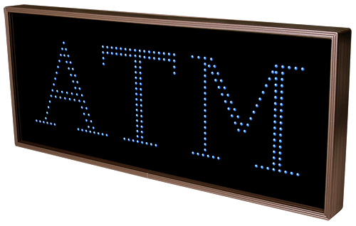 This TCL Series ATM IN SERIFF FONT (120-277VAC) outdoor, blank-out sign is designed with super bright LEDs and a contrasting face; we guarantee it's readable in direct sunlight. The sign message is formed by visible LEDs on a black sign face and is designed to illuminate the message(s) when turned on and blank out or extinguish the message when off.