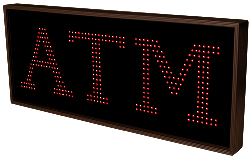 This TCL Series ATM (SERIF FONT) (120-277VAC) outdoor, blank-out sign is designed with super bright LEDs and a contrasting face; we guarantee it's readable in direct sunlight. The sign message is formed by visible LEDs on a black sign face and is designed to illuminate the message(s) when turned on and blank out or extinguish the message when off.