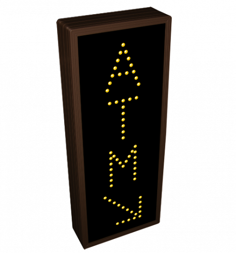 This TCL Series ATM w/ Down Right Arrow (120-277VAC) outdoor, blank-out sign is designed with super bright LEDs and a contrasting face; we guarantee it's readable in direct sunlight. The sign message is formed by visible LEDs on a black sign face and is designed to illuminate the message(s) when turned on and blank out or extinguish the message when off.