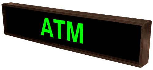 This PHX Series ATM outdoor, blankout sign is designed with high-intensity, LED reflected, backlit illumination and a block letter-style message face. The sign message illuminates when turned on and blanks out or extinguishes when off. PHX Series signs are guaranteed readable in direct sunlight.