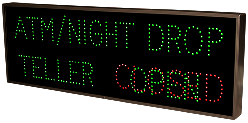 This TCL Series ATM/NIGHT DROP (120-277VAC) outdoor, blank-out sign is designed with super bright LEDs and a contrasting face; we guarantee it's readable in direct sunlight. The sign message is formed by visible LEDs on a black sign face and is designed to illuminate the message(s) when turned on and blank out or extinguish the message when off.