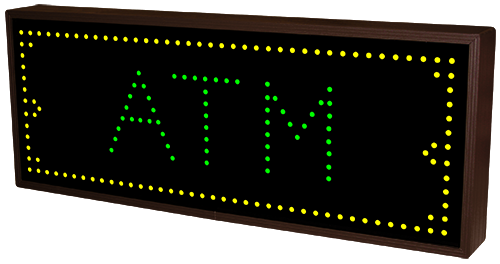 This TCL Series ATM w/ border (120-277VAC) outdoor, blank-out sign is designed with super bright LEDs and a contrasting face; we guarantee it's readable in direct sunlight. The sign message is formed by visible LEDs on a black sign face and is designed to illuminate the message(s) when turned on and blank out or extinguish the message when off.