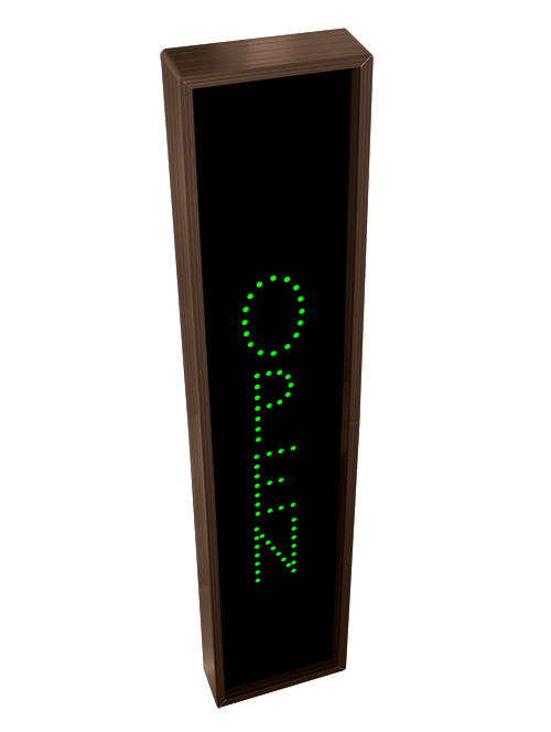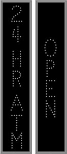 This TCL Series 24 HR ATM | OPEN outdoor, blank-out sign is designed with super bright LEDs and a contrasting face; we guarantee it's readable in direct sunlight. The sign message is formed by visible LEDs on a black sign face and is designed to illuminate the message(s) when turned on and blank out or extinguish the message when off.