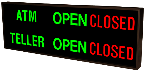 This PHX Series Personal Teller | ATM Plus outdoor, blankout sign is designed with high-intensity, LED reflected, backlit illumination and a block letter-style message face. The sign message illuminates when turned on and blanks out or extinguishes when off. PHX Series signs are guaranteed readable in direct sunlight.