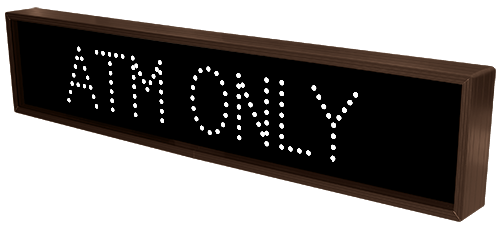 This TCL Series ATM ONLY (12-24VDC) outdoor, blank-out sign is designed with super bright LEDs and a contrasting face; we guarantee it's readable in direct sunlight. The sign message is formed by visible LEDs on a black sign face and is designed to illuminate the message(s) when turned on and blank out or extinguish the message when off.