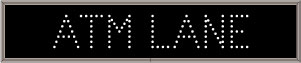 This TCL Series ATM LANE (12-24VDC) outdoor, blank-out sign is designed with super bright LEDs and a contrasting face; we guarantee it's readable in direct sunlight. The sign message is formed by visible LEDs on a black sign face and is designed to illuminate the message(s) when turned on and blank out or extinguish the message when off.
