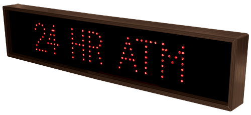 This TCL Series 24 HR ATM (120-277VAC) outdoor, blank-out sign is designed with super bright LEDs and a contrasting face; we guarantee it's readable in direct sunlight. The sign message is formed by visible LEDs on a black sign face and is designed to illuminate the message(s) when turned on and blank out or extinguish the message when off.