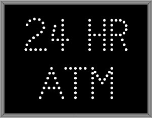 This TCL Series 24 HR ATM outdoor, blank-out sign is designed with super bright LEDs and a contrasting face; we guarantee it's readable in direct sunlight. The sign message is formed by visible LEDs on a black sign face and is designed to illuminate the message(s) when turned on and blank out or extinguish the message when off.