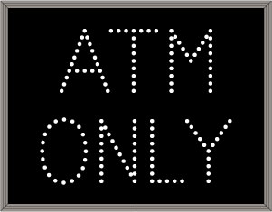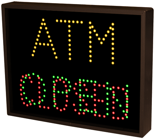 This TCL Series ATM ONLY outdoor, blank-out sign is designed with super bright LEDs and a contrasting face; we guarantee it's readable in direct sunlight. The sign message is formed by visible LEDs on a black sign face and is designed to illuminate the message(s) when turned on and blank out or extinguish the message when off.