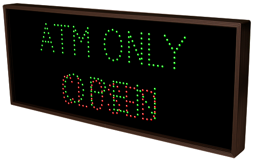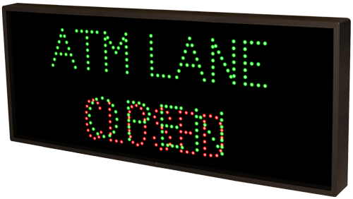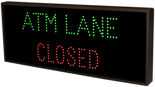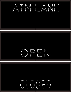 This TCL Series ATM LANE | OPEN | CLOSED (120-277VAC) outdoor, blank-out sign is designed with super bright LEDs and a contrasting face; we guarantee it's readable in direct sunlight. The sign message is formed by visible LEDs on a black sign face and is designed to illuminate the message(s) when turned on and blank out or extinguish the message when off.