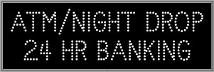 This TCL Series ATM/NIGHT DROP 24 HR BANKING (120-277VAC) outdoor, blank-out sign is designed with super bright LEDs and a contrasting face; we guarantee it's readable in direct sunlight. The sign message is formed by visible LEDs on a black sign face and is designed to illuminate the message(s) when turned on and blank out or extinguish the message when off.