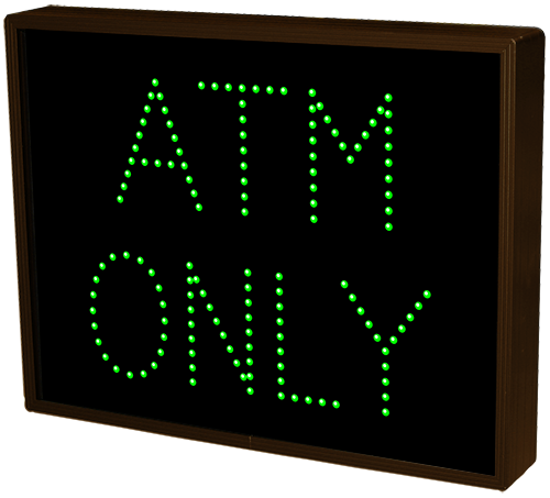 This PHX Series ATM ONLY outdoor, blankout sign is designed with high-intensity, LED reflected, backlit illumination and a block letter-style message face. The sign message illuminates when turned on and blanks out or extinguishes when off. PHX Series signs are guaranteed readable in direct sunlight.