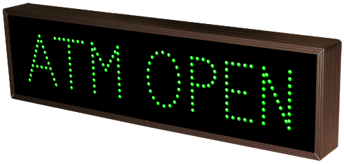 This TCL Series ATM OPEN outdoor, blank-out sign is designed with super bright LEDs and a contrasting face; we guarantee it's readable in direct sunlight. The sign message is formed by visible LEDs on a black sign face and is designed to illuminate the message(s) when turned on and blank out or extinguish the message when off.