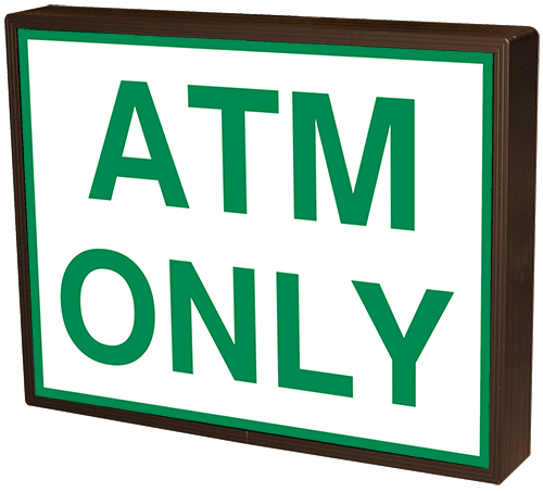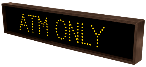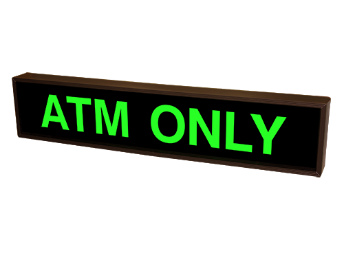 This TCL Series ATM ONLY outdoor, blank-out sign is designed with super bright LEDs and a contrasting face; we guarantee it's readable in direct sunlight. The sign message is formed by visible LEDs on a black sign face and is designed to illuminate the message(s) when turned on and blank out or extinguish the message when off.