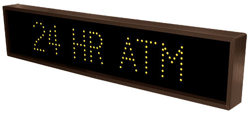 This TCL Series 24 HR ATM (120-277VAC) outdoor, blank-out sign is designed with super bright LEDs and a contrasting face; we guarantee it's readable in direct sunlight. The sign message is formed by visible LEDs on a black sign face and is designed to illuminate the message(s) when turned on and blank out or extinguish the message when off.