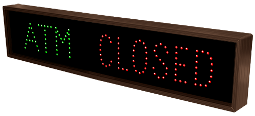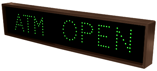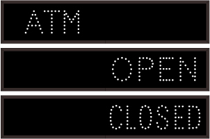 This TCL Series ATM | OPEN | CLOSED outdoor, blank-out sign is designed with super bright LEDs and a contrasting face; we guarantee it's readable in direct sunlight. The sign message is formed by visible LEDs on a black sign face and is designed to illuminate the message(s) when turned on and blank out or extinguish the message when off.