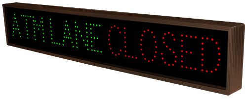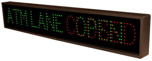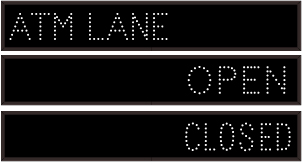 This TCL Series ATM LANE | OPEN | CLOSED (120-277VAC) outdoor, blank-out sign is designed with super bright LEDs and a contrasting face; we guarantee it's readable in direct sunlight. The sign message is formed by visible LEDs on a black sign face and is designed to illuminate the message(s) when turned on and blank out or extinguish the message when off.