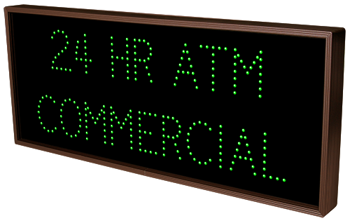 This TCL Series 24 HR ATM | COMMERCIAL outdoor, blank-out sign is designed with super bright LEDs and a contrasting face; we guarantee it's readable in direct sunlight. The sign message is formed by visible LEDs on a black sign face and is designed to illuminate the message(s) when turned on and blank out or extinguish the message when off.