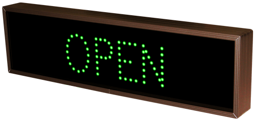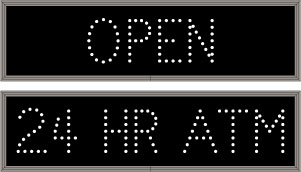 This TCL Series OPEN | 24 HR ATM outdoor, blank-out sign is designed with super bright LEDs and a contrasting face; we guarantee it's readable in direct sunlight. The sign message is formed by visible LEDs on a black sign face and is designed to illuminate the message(s) when turned on and blank out or extinguish the message when off.