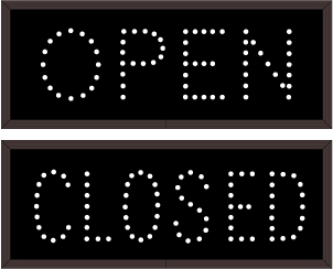 This TCL Series OPEN | CLOSED (120-277VAC) outdoor, blank-out sign is designed with super bright LEDs and a contrasting face; we guarantee it's readable in direct sunlight. The sign message is formed by visible LEDs on a black sign face and is designed to illuminate the message(s) when turned on and blank out or extinguish the message when off.
