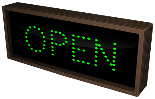 This TCL Series OPEN | CLOSED outdoor, blank-out sign is designed with super bright LEDs and a contrasting face; we guarantee it's readable in direct sunlight. The sign message is formed by visible LEDs on a black sign face and is designed to illuminate the message(s) when turned on and blank out or extinguish the message when off.