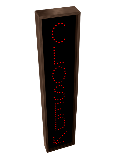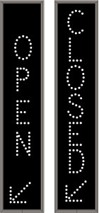 This TCL Series OPEN w/ Left Down Arrow | CLOSED w/ Left Down Arrow (120-277VAC) outdoor, blank-out sign is designed with super bright LEDs and a contrasting face; we guarantee it's readable in direct sunlight. The sign message is formed by visible LEDs on a black sign face and is designed to illuminate the message(s) when turned on and blank out or extinguish the message when off.