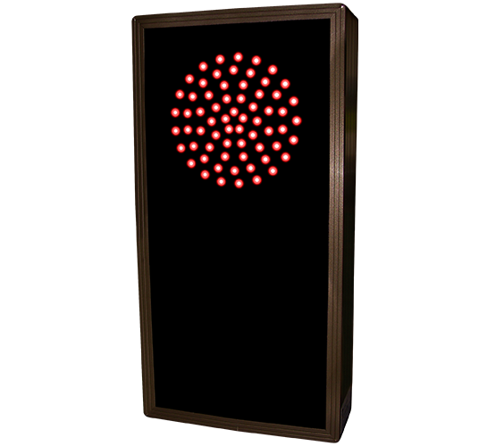 This TCL Series Indicator Dots, Double, Vertical, 4 in dia, Red - Green outdoor, blank-out sign is designed with super bright LEDs and a contrasting face; we guarantee it's readable in direct sunlight. The sign message is formed by visible LEDs on a black sign face and is designed to illuminate the message(s) when turned on and blank out or extinguish the message when off.