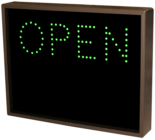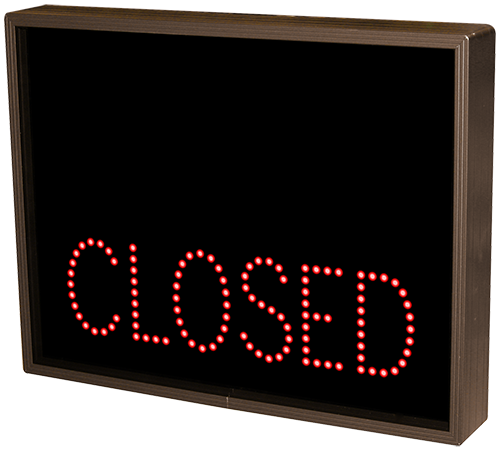 This TCL Series OPEN | CLOSED outdoor, blank-out sign is designed with super bright LEDs and a contrasting face; we guarantee it's readable in direct sunlight. The sign message is formed by visible LEDs on a black sign face and is designed to illuminate the message(s) when turned on and blank out or extinguish the message when off.