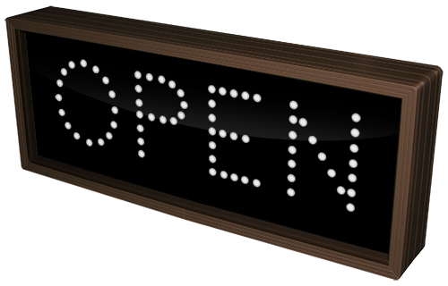 This TCL Series OPEN (12-24VDC) outdoor, blank-out sign is designed with super bright LEDs and a contrasting face; we guarantee it's readable in direct sunlight. The sign message is formed by visible LEDs on a black sign face and is designed to illuminate the message(s) when turned on and blank out or extinguish the message when off.