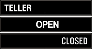 This PHX Series TELLER | OPEN | CLOSED outdoor, blankout sign is designed with high-intensity, LED reflected, backlit illumination and a block letter-style message face. The sign message illuminates when turned on and blanks out or extinguishes when off. PHX Series signs are guaranteed readable in direct sunlight.