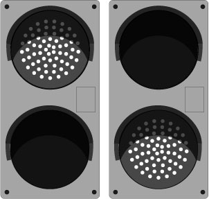 TCIL Series LED Traffic Controller - Vertical, Red-Green. Features super bright, direct-view LEDs on a replaceable circuit board. Controller housing and hood construction is injection molded, impact resistant polycarbonate. Also includes two tinted lens covers.