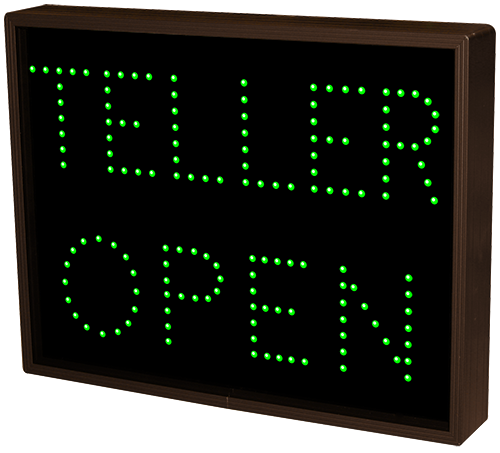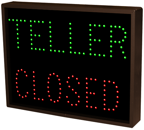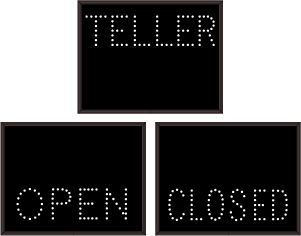 This TCL Series TELLER | OPEN | CLOSED outdoor, blank-out sign is designed with super bright LEDs and a contrasting face; we guarantee it's readable in direct sunlight. The sign message is formed by visible LEDs on a black sign face and is designed to illuminate the message(s) when turned on and blank out or extinguish the message when off.