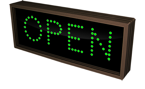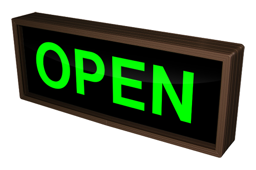 This PHX Series OPEN outdoor, blankout sign is designed with high-intensity, LED reflected, backlit illumination and a block letter-style message face. The sign message illuminates when turned on and blanks out or extinguishes when off. PHX Series signs are guaranteed readable in direct sunlight.
