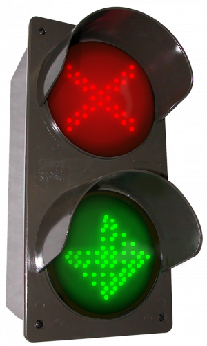 52176 (TCILV-RGG-G095/120-277VAC) LED traffic Controller X | Down Arrow | Right Arrow, Vertical, Red-Green-Green (120-277 VAC) LED Sign