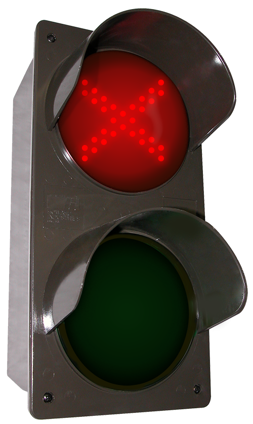 TCIL Series LED Traffic Controller vertical, with X|Arrow messages. Features super bright, direct-view LEDs on a replaceable circuit board. Controller housing and hood construction is injection molded, impact resistant polycarbonate. Includes two tinted lens covers.
