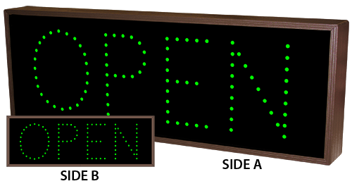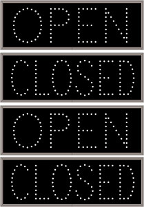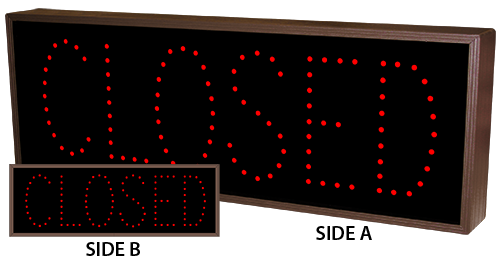 This TCL Series OPEN | CLOSED | OPEN | CLOSED (12-24VDC) outdoor, blank-out sign is designed with super bright LEDs and a contrasting face; we guarantee it's readable in direct sunlight. The sign message is formed by visible LEDs on a black sign face and is designed to illuminate the message(s) when turned on and blank out or extinguish the message when off.