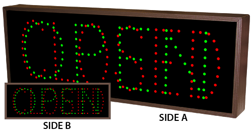 This TCL Series OPEN | CLOSED | OPEN | CLOSED outdoor, blank-out sign is designed with super bright LEDs and a contrasting face; we guarantee it's readable in direct sunlight. The sign message is formed by visible LEDs on a black sign face and is designed to illuminate the message(s) when turned on and blank out or extinguish the message when off.