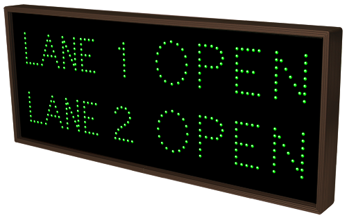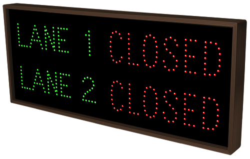 This TCL Series LANE 1 | OPEN | CLOSED | LANE 2 | OPEN | CLOSED (120-277VAC) outdoor, blank-out sign is designed with super bright LEDs and a contrasting face; we guarantee it's readable in direct sunlight. The sign message is formed by visible LEDs on a black sign face and is designed to illuminate the message(s) when turned on and blank out or extinguish the message when off.