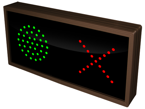 This TCL Series Indicator Dots, Double, Vertical, 4 in dia, Red - Green outdoor, blank-out sign is designed with super bright LEDs and a contrasting face; we guarantee it's readable in direct sunlight. The sign message is formed by visible LEDs on a black sign face and is designed to illuminate the message(s) when turned on and blank out or extinguish the message when off.