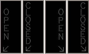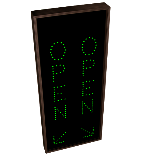 This TCL Series OPEN w/ Down Left Arrow | CLOSED w/ Down Left Arrow | OPEN w/ Down Right Arrow | CLOSED w/ Down Right Arrow (120-277VAC) outdoor, blank-out sign is designed with super bright LEDs and a contrasting face; we guarantee it's readable in direct sunlight. The sign message is formed by visible LEDs on a black sign face and is designed to illuminate the message(s) when turned on and blank out or extinguish the message when off.