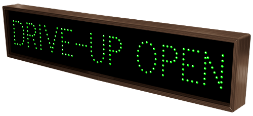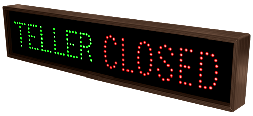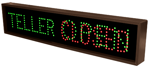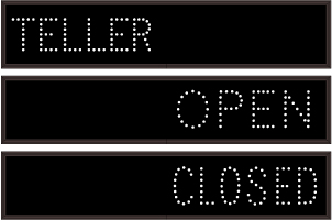 This TCL Series TELLER | OPEN | CLOSED outdoor, blank-out sign is designed with super bright LEDs and a contrasting face; we guarantee it's readable in direct sunlight. The sign message is formed by visible LEDs on a black sign face and is designed to illuminate the message(s) when turned on and blank out or extinguish the message when off.