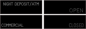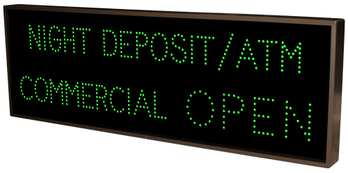 This TCL Series NIGHT DEPOSIT/ATM | COMMERCIAL | OPEN | CLOSED (120-277VAC) outdoor, blank-out sign is designed with super bright LEDs and a contrasting face; we guarantee it's readable in direct sunlight. The sign message is formed by visible LEDs on a black sign face and is designed to illuminate the message(s) when turned on and blank out or extinguish the message when off.