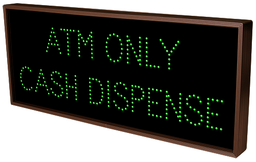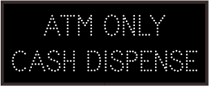 This TCL Series ATM ONLY CASH DISPENSE (120-277VAC) outdoor, blank-out sign is designed with super bright LEDs and a contrasting face; we guarantee it's readable in direct sunlight. The sign message is formed by visible LEDs on a black sign face and is designed to illuminate the message(s) when turned on and blank out or extinguish the message when off.