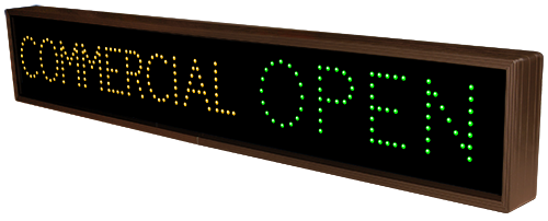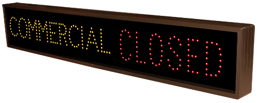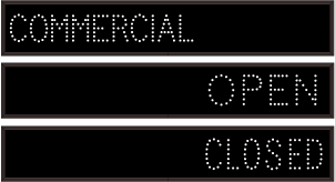 This TCL Series COMMERCIAL | OPEN | CLOSED (120-277VAC) outdoor, blank-out sign is designed with super bright LEDs and a contrasting face; we guarantee it's readable in direct sunlight. The sign message is formed by visible LEDs on a black sign face and is designed to illuminate the message(s) when turned on and blank out or extinguish the message when off.