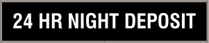 This PHX Series 24 HR NIGHT DEPOSIT outdoor, blankout sign is designed with high-intensity, LED reflected, backlit illumination and a block letter-style message face. The sign message illuminates when turned on and blanks out or extinguishes when off. PHX Series signs are guaranteed readable in direct sunlight.