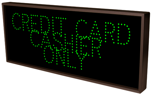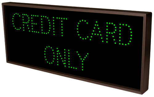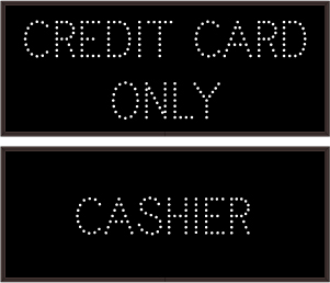 This TCL Series CREDIT CARD ONLY | CASHIER (120-277VAC) outdoor, blank-out sign is designed with super bright LEDs and a contrasting face; we guarantee it's readable in direct sunlight. The sign message is formed by visible LEDs on a black sign face and is designed to illuminate the message(s) when turned on and blank out or extinguish the message when off.